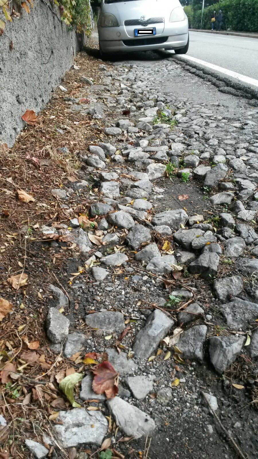 “Tutto il marciapiede è impraticabile – ha detto oggi il marito raccontando l’episodio – è necessario intervenire urgentemente perchè quello che è accaduto a mia moglie può succedere a chiunque. Non è possibile che il Comune non riesca a sistemare quel tratto”.