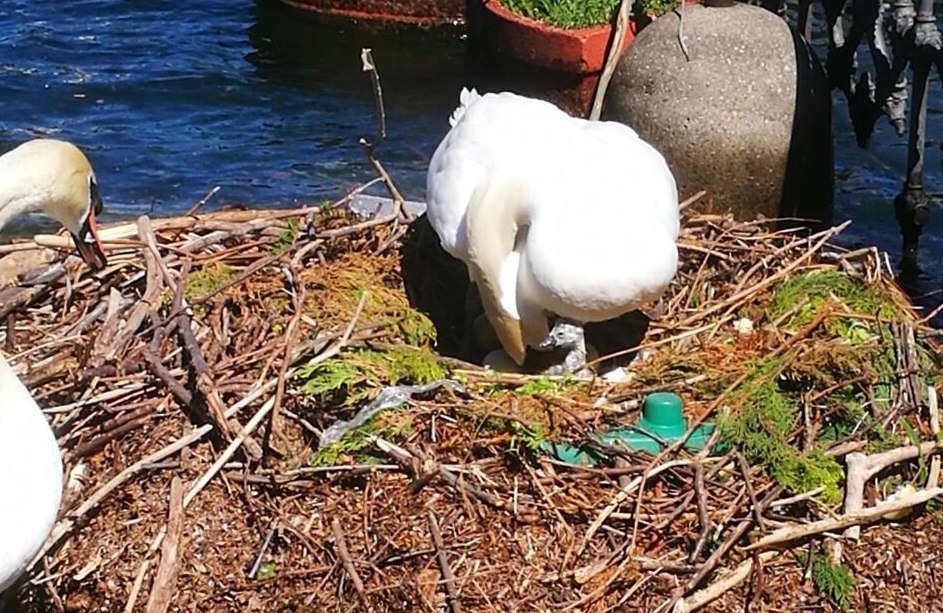 Lieto evento sul lungolago. In queste ore si è schiuso il primo uovo (dei cinque covati) della coppia di cigni che aveva costruito il lago vicino all’ex biglietteria.