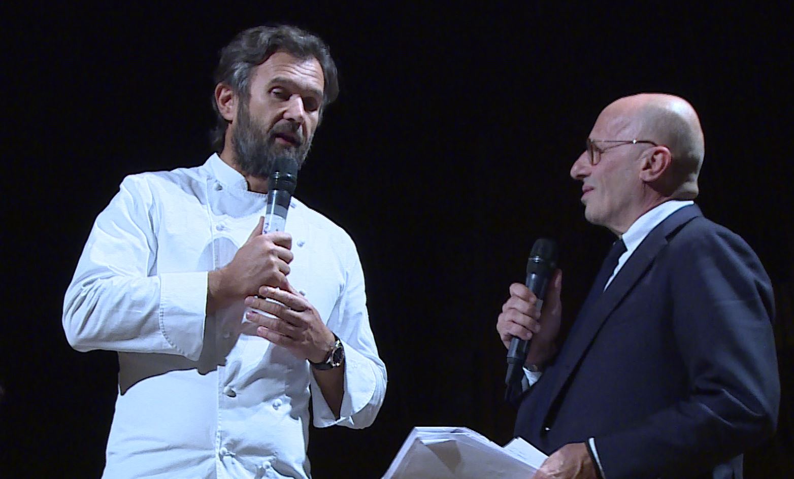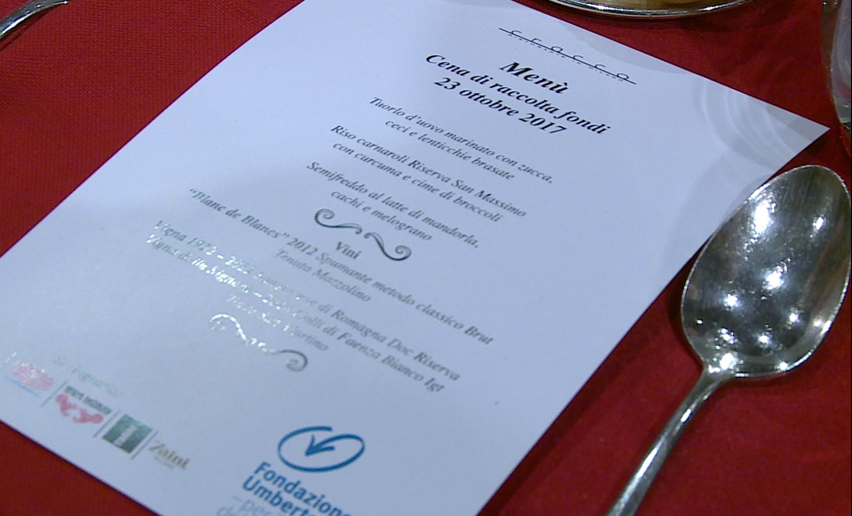 Quasi 500 i commensali presenti, il menù della serata era affidato allo chef stellato e noto volto televisivo, Carlo Cracco assieme alla moglie Rosa, che ha proposto portate in grado di unire gusto, benessere e attenzione alla salute.