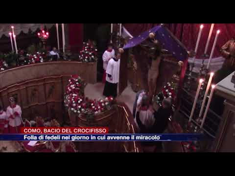 Folla di comaschi per il bacio del SS. Crocifisso nella Basilica di viale Varese. Centinaia i fedeli che hanno partecipato alla celebrazione presieduta dal vescovo emerito monsignor Diego Coletti.