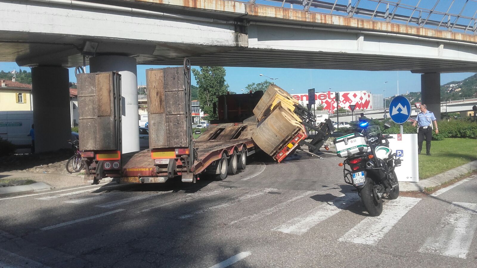 Incidente questa mattina verso le 9. Un autocarro che trasportava uno schiacciasassi da cantiere ha urtato il cavalcavia di via Asiago, che conduce alla galleria di Cernobbio, e si è ribaltato. In una nota Palazzo Cernezzi fa sapere che sul posto è intervenuta la polizia locale. Il traffico tra Tavernola, Cernobbio e Brogeda è paralizzato e il flusso in uscita da Como è stato deviato verso Maslianico. È “necessario rimuovere il mezzo ed effettuare delle verifiche al cavalcavia”, fanno sapere dal Comune.