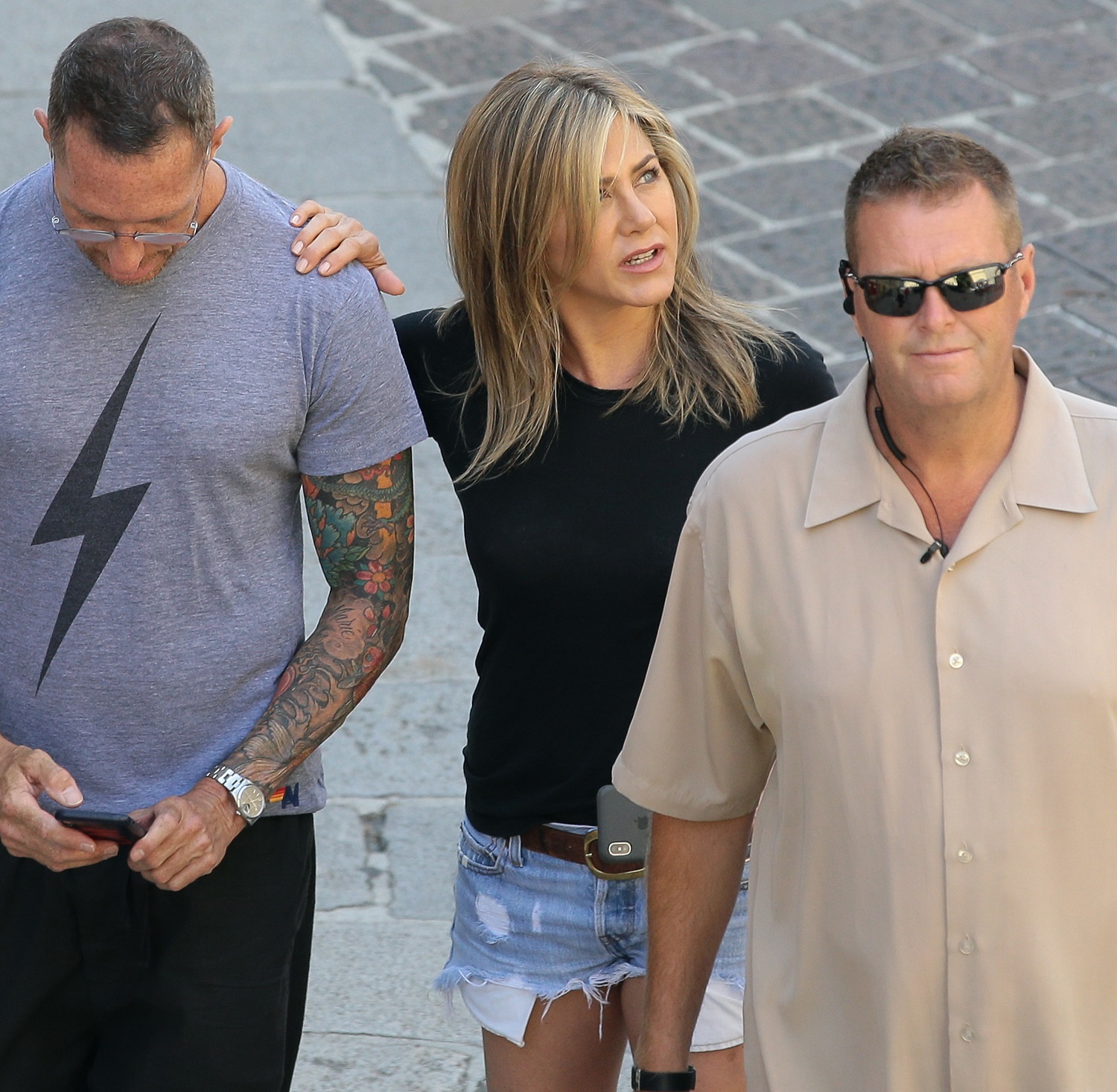 E invece è Jennifer Aniston, una delle star più longeve – in termini di carriera – e apprezzate di Hollywood. Non girava con cappelli o occhiali da sole coprenti. Una tenuta estiva, molto semplice, com’è peraltro nel suo stile, sobrio, acqua e sapone.