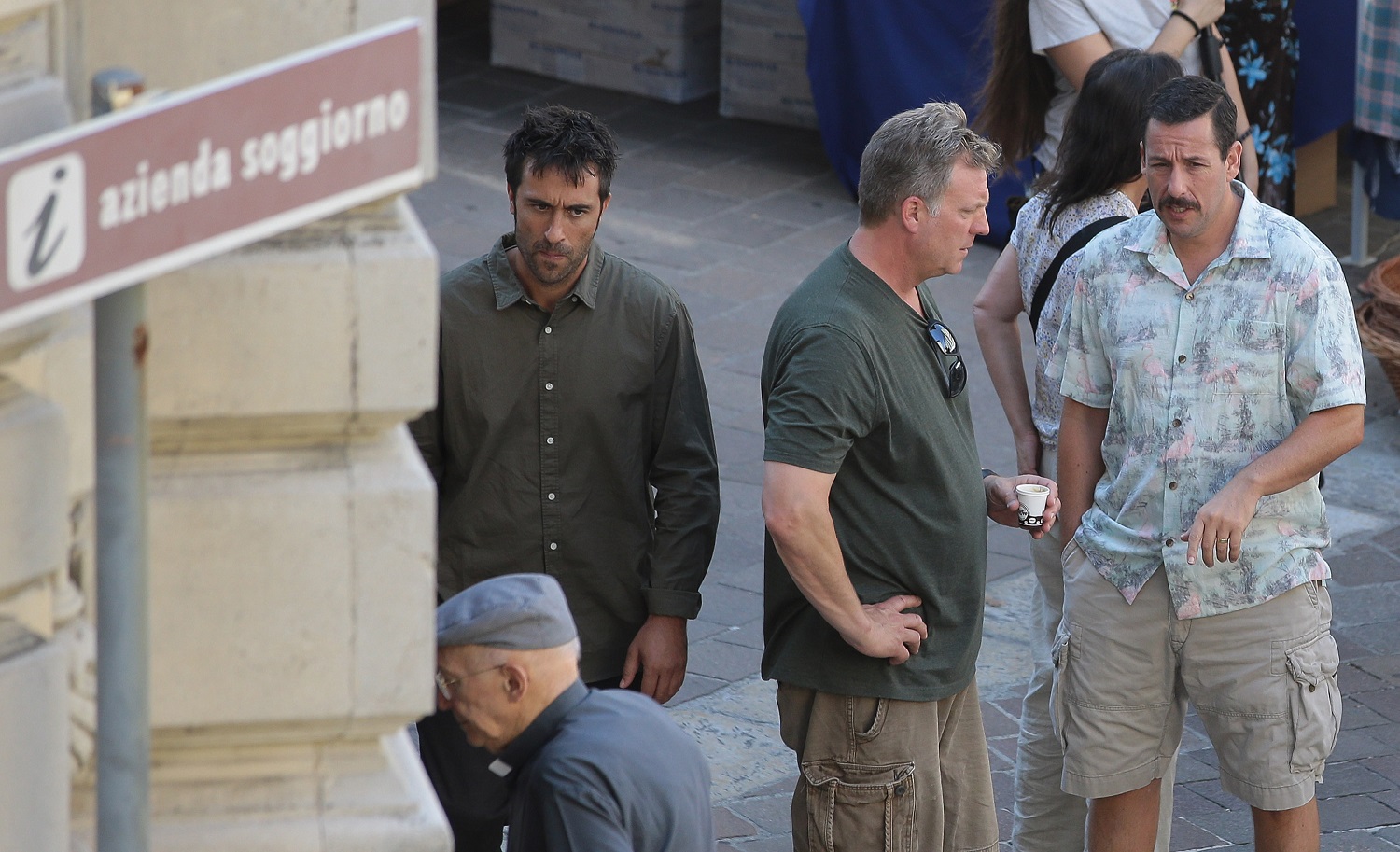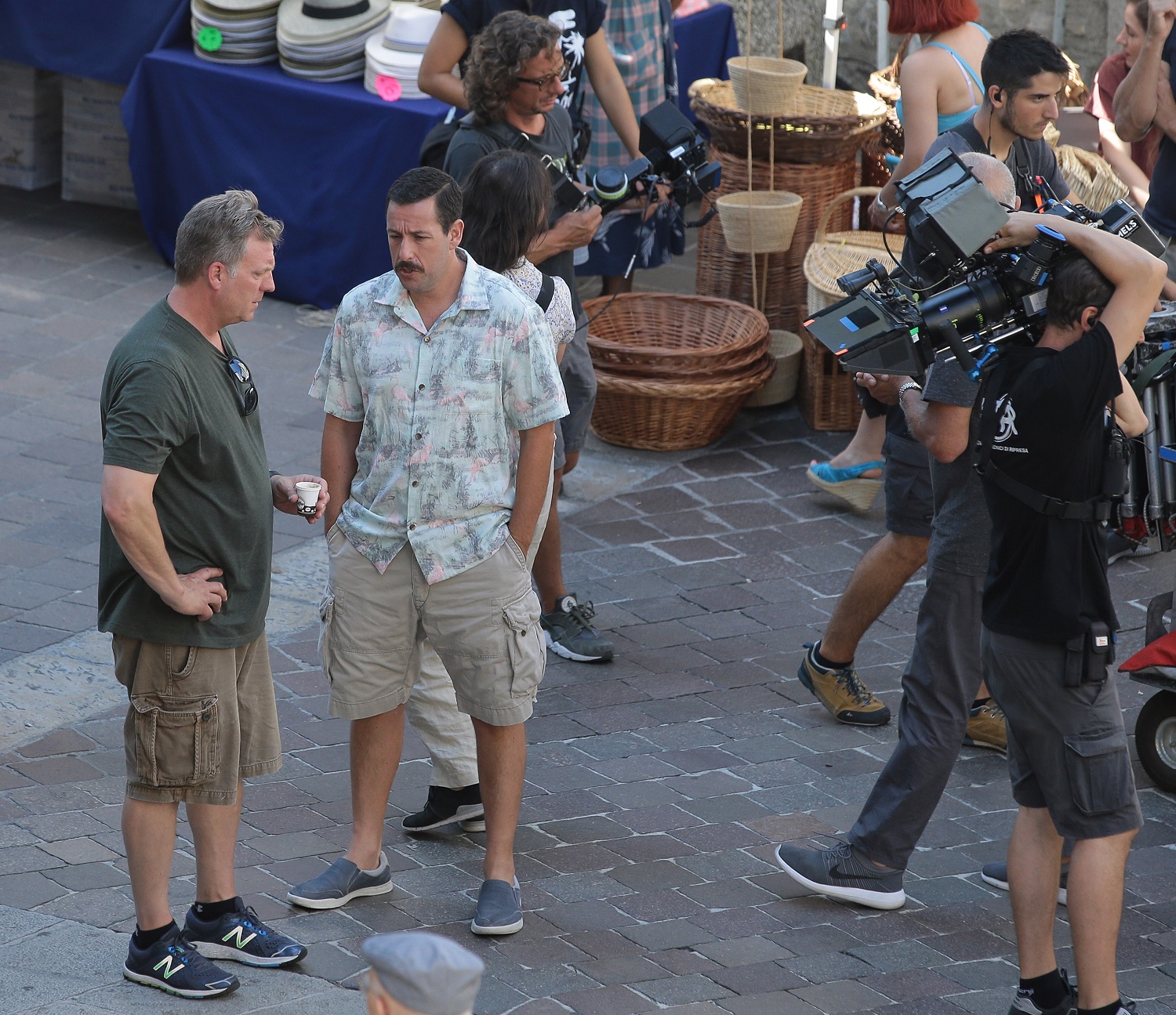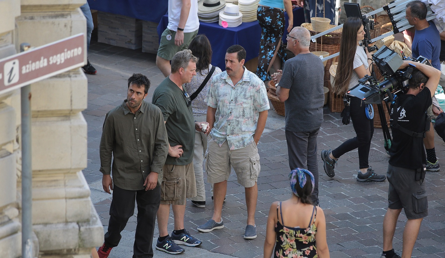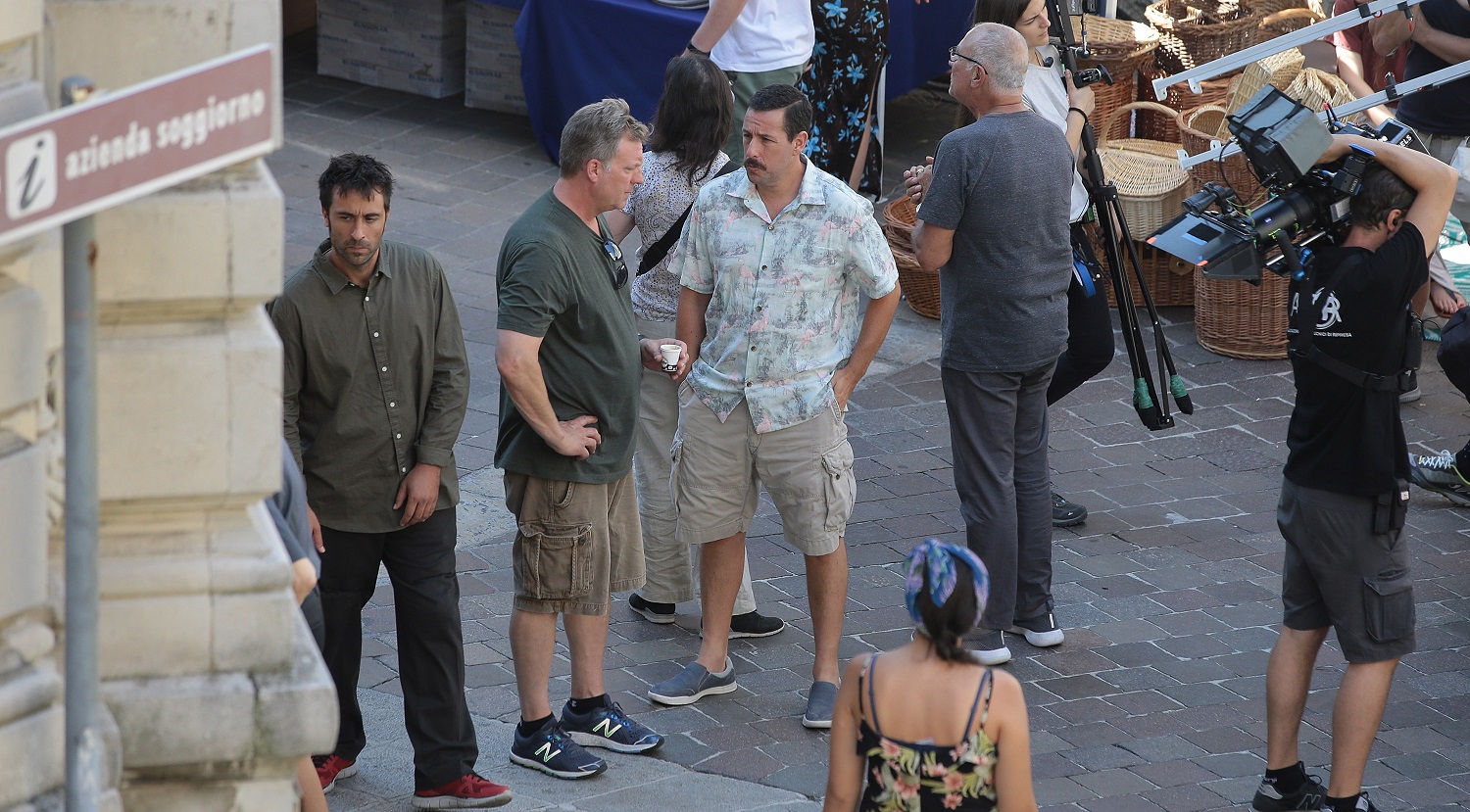La Aniston è a Como per le riprese di Murder Mystery, film prodotto da Netflix. Al suo fianco, il coprotagonista Adam Sandler: anche lui non è sfuggito agli obiettivi. E’ stato fotografato in centro a Como. Bermuda, camicia a maniche corte e look baffuto.