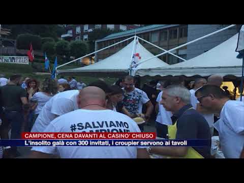 Dai tavoli della roulette a quelli di un improvvisato ristorante sotto le stelle. I croupier del casinò di Campione hanno preparato e servito la cena a circa 300 ospiti ieri sera durante l’insolito Gran Galà del Casinò chiuso. Un evento organizzato dai dipendenti della casa da gioco, che dal 27 luglio scorso, data della dichiarazione di fallimento e della chiusura della casa da gioco, sono in presidio permanente davanti alla struttura.