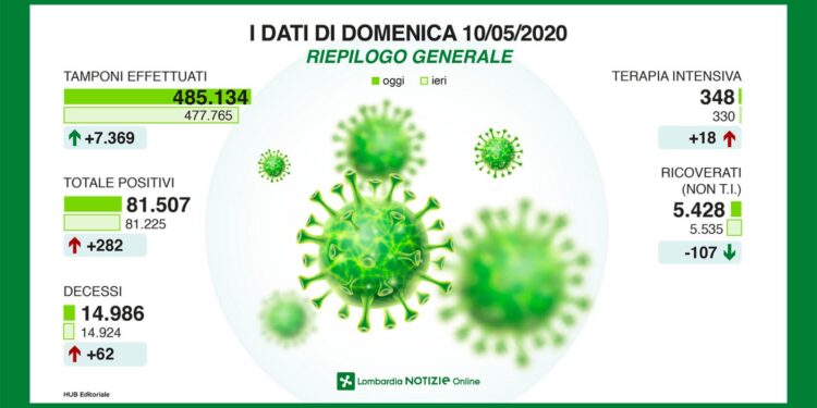 Nelle ultime 24 ore in regione sono stati processati 7.369 tamponi – ieri erano stati più di 11mila e 400 – e i nuovi casi accertati sono 282 a fronte dei 502 di ieri. Il totale dei lombardi che hanno certamente contratto il virus dall’inizio della pandemia sale a 81.507. La situazione negli ospedali: i malati più gravi, ricoverati nelle terapie intensive sono tornati a salire di 18 persone e oggi sono 348 (negli ultimi due giorni il dato era sceso in totale di 150). Mentre nei reparti non intensivi i pazienti Covid sono 5.428, con una riduzione di ulteriori 107 rispetto a ieri.