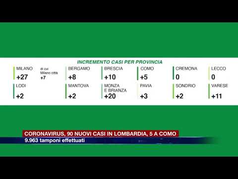 A fronte di 9.963 tamponi effettuati, sono 90 i nuovi positivi in Lombardia, pari all’0,9%: non si registrano nuovi casi in provincia di Cremona e Lecco, mentre a Como sono 5 in più.