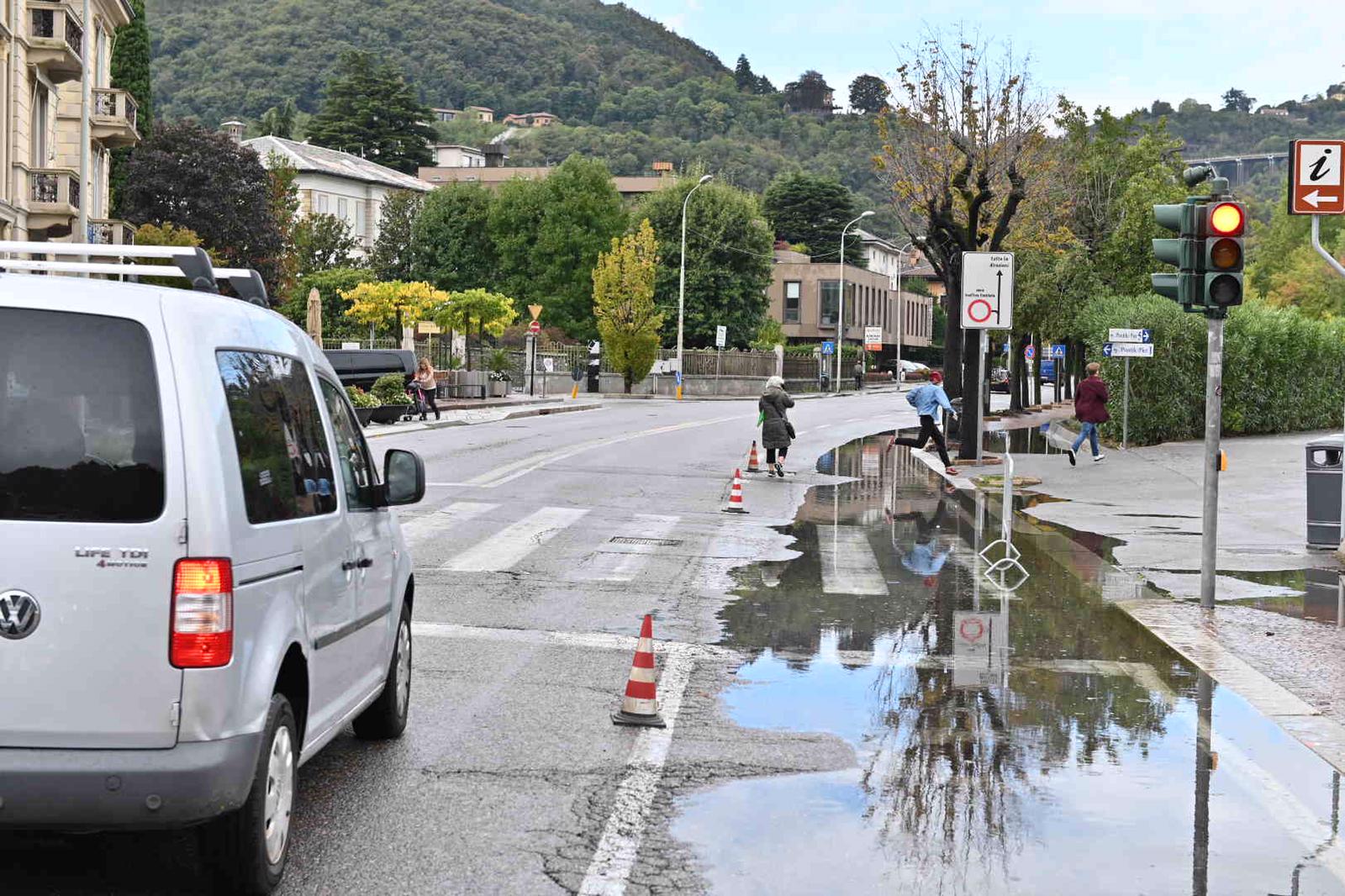 In città il lago osservato speciale sin da stamattina, il livello alle 11.00 era già a più di 117 centimetri. Inevitabili code e rallentamenti che si riversano sulla viabilità dell’intera convalle. Per i bus prevista la deviazione, la corsia dei mezzi pubblici.