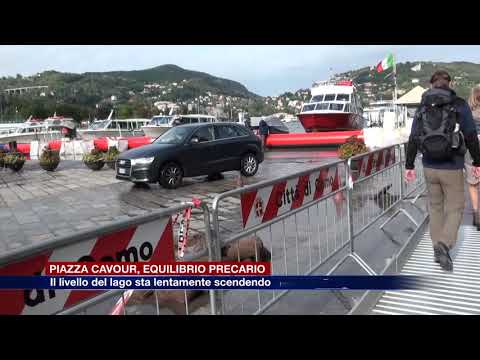 La corsia del lungolago antistante piazza Cavour è coperta da uno strato di acqua. L’idrovora e le pompe messe in funzione dalla protezione civile lavorano senza sosta e continueranno a lavorare finché il lago non tornerà sotto la soglia di esondazione, fissata a 120 centimetri.