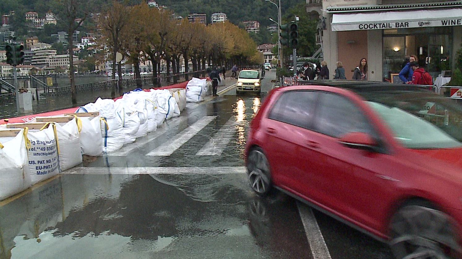 In piazza Cavour, per favorire il passaggio dei pedoni in sicurezza sono state installate brevi passerelle nei punti in cui si accumula una quantità maggiore di acqua. Gli agenti della polizia locale presidiano l’area per rendere più scorrevole il passaggio dei veicoli e dare informazioni a comaschi e turisti.