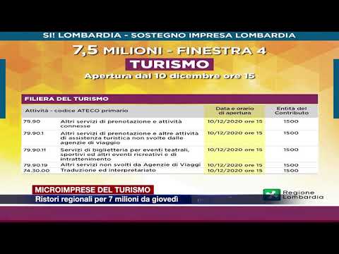 Turismo e ristori: si apre giovedì la finestra per ottenere i contributi nell’ambito dei 7 milioni di euro stanziati dalla Lombardia, in un’ottica di complementarietà: in altre parole, intervenire sui settori che non beneficiano di ristori statali.