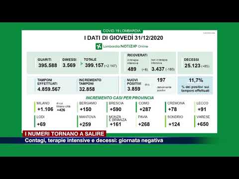 In 24 ore in Lombardia sono stati registrati 3.859 nuovi contagi a fronte di 32.858 tamponi processati e 85 nuovi decessi, per un totale di 25.123 dall’inizio della pandemia.