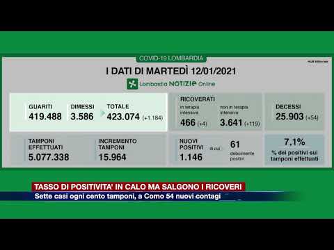 Tasso di positività in significativo calo in Lombardia, ma aumentano i ricoveri complessivi negli ospedali della regione. Con 15.964 tamponi processati, sono 1.146 i nuovi positivi e il rapporto scende dunque al 7,1%, il dato più basso da giorni.