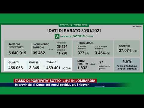 A fronte di 39.462 test processati – di cui 28.234 molecolari e 11.228 antigenici – i nuovi positivi accertati sono 1.832, con un rapporto pari al 4,6%. I nuovi guariti dimessi sono 5.009, mentre altri 58 cittadini lombardi hanno perso la vita per il virus.
