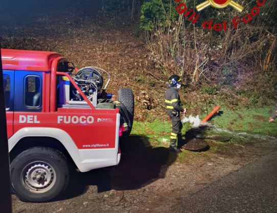 Perdita idrica a San Fermo in via delle Busacce, intervento dei vigili del fuoco. I pompieri hanno effettuato le operazioni di abbattimento dell’idrante.