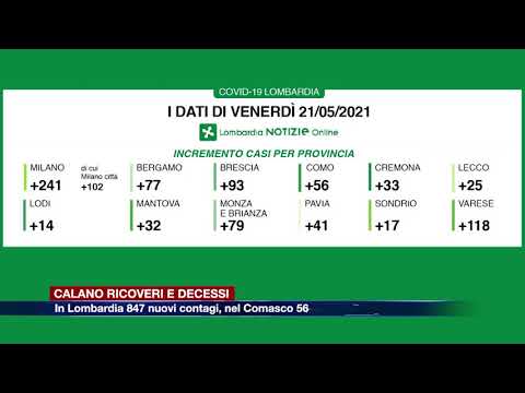La situazione nelle province lombarde: quelle con il maggior numero di nuovi casi sono Milano, che ne conta 241, dei quali 102 in città, e Varese, che ne conta 118. Poco sotto il centinaio Brescia con 93 contagi in più. Seguono Monza e Brianza con 79 nuovi positivi, Bergamo con 77, Como con 56, Pavia con 41, Cremona con 33, Mantova con 32, Lecco con 25. Le province con il minor numero di nuovi casi sono Sondrio (17) e Lodi (14).