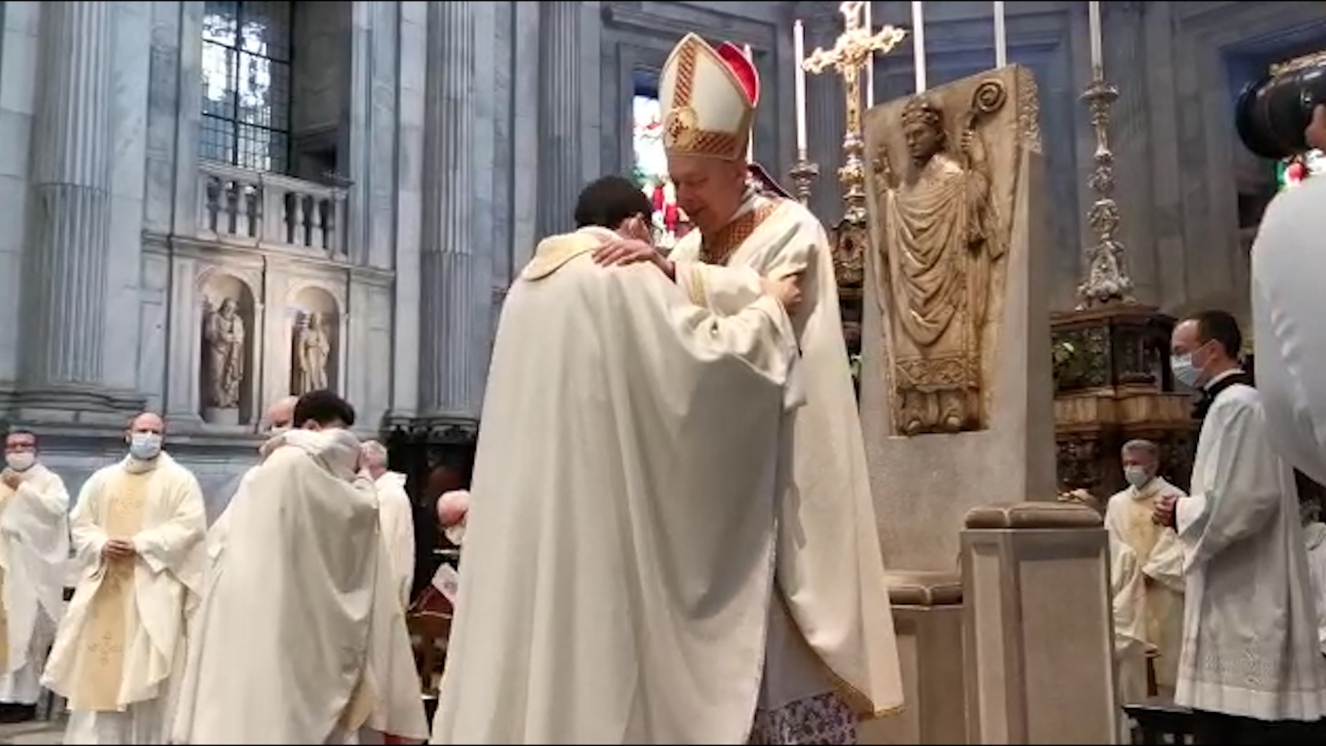 Cattedrale di Como gremita questa mattina, nel rispetto delle disposizioni anti-contagio, per l’ordinazione, avvenuta per imposizione delle mani e con la preghiera consacratoria del Vescovo monsignor Oscar Cantoni, di tre novelli sacerdoti: don Mauro Confortola, don Gabriele Mandaglio e don Andrea Pelozzi. Confortola, del 1987, è nativo di Livigno, Mandaglio, del 1991, è di Bulgorello, in provincia di Como, mentre Pelozzi, classe 1994, è di Comacchio di Azzio, in provincia di Varese. Tutti e tre hanno svolto il loro percorso formativo in diverse parrocchie tra le province di Como e Sondrio.