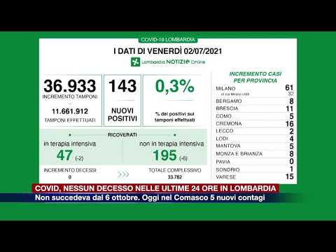 Lo annuncia il presidente della Lombardia, Attilio Fontana. “Un’altra ottima notizia. La più bella che potessimo ricevere: oggi in Lombardia non registriamo decessi e il numero dei ricoveri continua a diminuire. Colgo, ancora una volta – conclude Fontana – l’occasione per ringraziare tutti i lombardi, invitando, chi ancora non l’avesse fatto, a vaccinarsi e a mantenere i comportamenti virtuosi che conosciamo”.