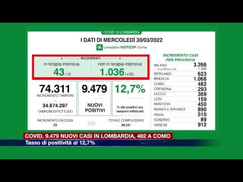 L’aggiornamento sul contagio registra, a fronte di 74.311 tamponi effettuati, 9.479 nuovi casi Covid in Lombardia.