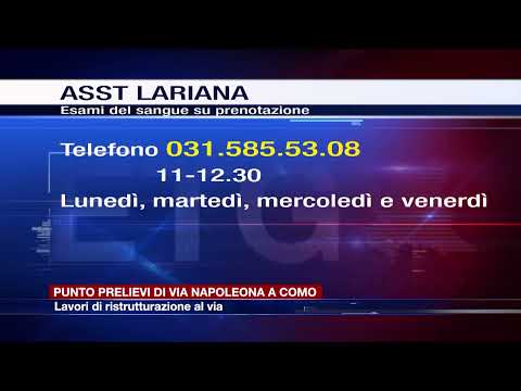 Asst Lariana rende noto che per prenotare gli esami del sangue al Punto Prelievi di Como in via Napoleona è possibile telefonare al numero di Asst Lariana 031/585 5308 dalle ore 11 alle 12.30 il lunedì, martedì, mercoledì e venerdì. Viene, infatti, disattivato, per questa tipologia di servizio, il numero del call center di Regione Lombardia.