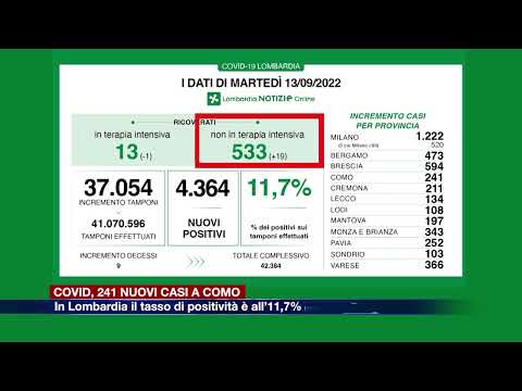 Nelle province lombarde, Milano è quella che conta ancora il numero più alto di casi, sono 1.222 di cui 520 a Milano città. Nel Comasco i nuovi positivi sono 241. A Bergamo: 473; a Brescia: 594; a Cremona: 211; a Lecco: 134; a Lodi: 108; a Mantova: 197; a Monza e Brianza: 343; a Pavia: 252; a Sondrio: 103; a Varese: 366.