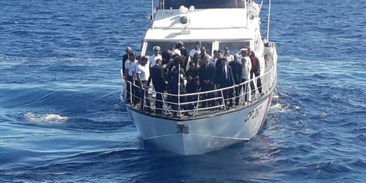 (ANSA) – LAMPEDUSA, 03 OTT – Il presidente della Camera dei deputati, Roberto Fico, il sindaco delle Pelagie, Filippo Mannino, e il presidente del comitato 3 ottobre, Tareke Bhraine, hanno lasciato cadere in mare aperto, nel punto esatto dove 9 anni fa naufragò il barcone carico di eritrei ed etiopi partiti dalla Libia, una corona di fiori in memoria delle 368 vittime del 2013. Le sirene delle motovedette di Guardia costiera, Guardia di finanza, carabinieri e vigili del fuoco hanno spezzato il silenzio. Telefoni cellulari alla mano anche i sopravvissuti hanno ripreso con foto e video. (ANSA).