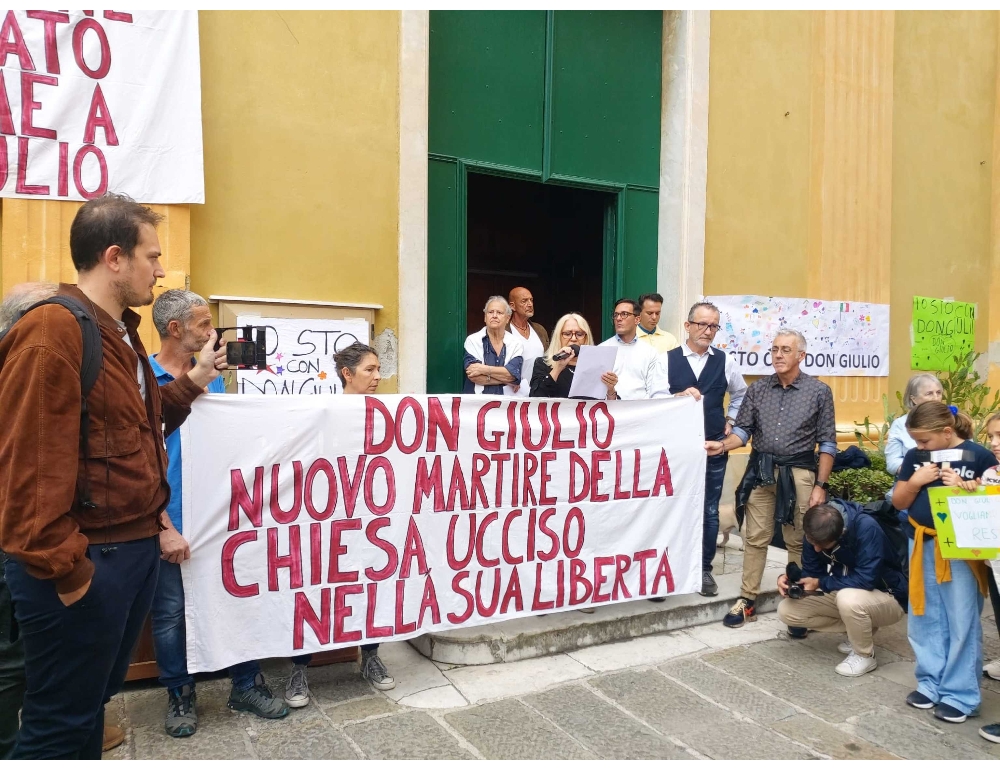(ANSA) – BONASSOLA, 09 OTT – "Don Giulio nuovo martire della Chiesa ucciso nella sua libertà". E’ il grande striscione che ha aperto la manifestazione a difesa di don Giulio Mignani, il sacerdote sospeso dalla celebrazione dei sacramenti dalla diocesi della Spezia per le sue posizioni sulle coppie arcobaleno e sull’eutanasia, sull’aborto e sulle adozioni per coppie omosessuali. Aveva detto, tra l’altro, "spero che un giorno si possano celebrare in chiesa matrimoni tra due persone dello stesso sesso". In oltre 400 si sono riuniti davanti alla chiesa di Santa Caterina a Bonassola per iniziativa del comitato #Iostocondongiulio. "Vorrei che questa giornata continuasse, che non si chiudesse qui e chiede al comitato di organizzare altre giornate come questa e io da dovunque sarò verrò", ha detto il sacerdote raccogliendo un lungo applauso. (ANSA).