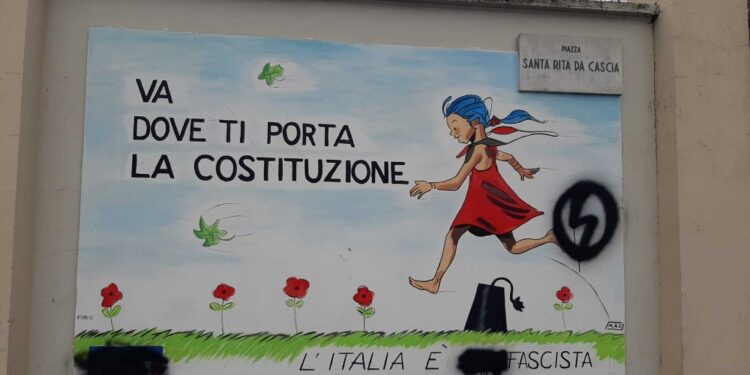 (ANSA) – TORINO, 24 DIC – Imbrattato la scorsa notte, con simboli di estrema destra, il murales sulla parete dell’edificio che ospita la scuola elementare ‘Giuseppe Mazzini’, di via Santa Rita 5, quartiere Santa Rita a Torino. Sul disegno, che raffigura una bambina che corre su di un prato e la scritta ‘Va dove ti porta la Costituzione’, con lo spray nero è stato riprodotto un fulmine cerchiato, logo del ‘Blocco Studentesco’, gruppo vicino a Casapound ed è stata cancellata la parola ‘anti’ dalla frase ‘L’Italia è anti fascista’, trasformandola così in ‘L’Italia è fascista’. Cancellato anche il simbolo dell’Associazione Nazionale Partigiani d’Italia. Il murales era stato realizzato quest’anno dall’artista Vito Navolio, dopo che la sezione Anpi di Santa Rita aveva proposto la realizzazione all’associazione Mau, per celebrare il 25 aprile. Altre scritte sono apparse in piazza Santi Apostoli, nel quartiere Mirafiori Sud: ‘Hasta la vista antifascista’, ‘Antifa ah ah’, con la firma Blocco Studentesco. "Anche Natale persone senza memoria e senza rispetto imbrattano monumenti e muri con frasi farneticanti – commenta Luca Rolandi, presidente della Circoscrizione 2 di cui fanno parte i quartieri coinvolti nel raid vandalico -Condanniamo duramente quanto accaduto e già questo pomeriggio interverremo per ripulire il murales". (ANSA).