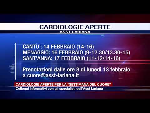 All’ospedale Sant’Antonio Abate di Cantù le visite saranno effettuate il 14 febbraio dalle ore 14 alle ore 16. A Menaggio il 16 febbraio dalle 9-12.30 e 13.30-15. Al Sant’Anna il 17 febbraio dalle 11 alle 12 e dalle 14 alle 16. Per partecipare all’iniziativa sarà necessario prenotarsi inviando una mail a partire dalle ore 8 di lunedì 13 febbraio all’indirizzo cuore@asst-lariana.it.