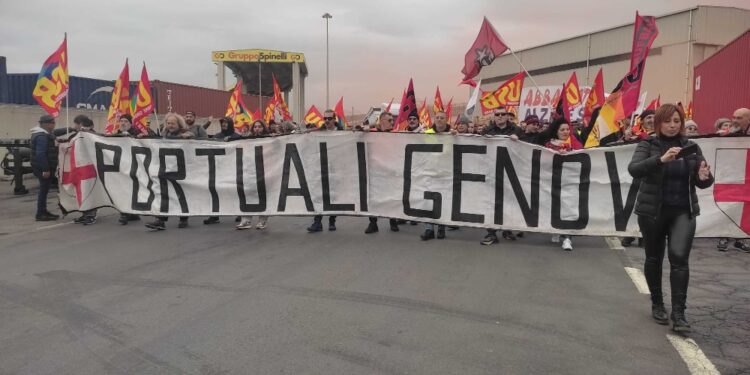 (ANSA) – GENOVA, 25 FEB – Oltre duemila persone da tutta Italia hanno partecipato a Genova alla prima giornata internazionale di mobilitazione contro il transito di armi verso zone di guerra dai porti civili organizzata dal Calp (Collettivo autonomo lavoratori portuali). Il corteo, con lo slogan "abbassare le armi, alzare i salari", è partito dal varco di Ponte Etiopia ed è diretto, per la prima volta, dentro al porto genovese. Alla manifestazione partecipano lavoratori dei principali porti italiani, studenti, sindacati, e anche anarchici. Le denunce del Calp contro le navi cariche di armi che si fermano nei porti italiani e poi si dirigono in Africa vanno avanti dal 2019 e hanno trovato la solidarietà, tra gli altri, anche di papa Francesco. (ANSA).