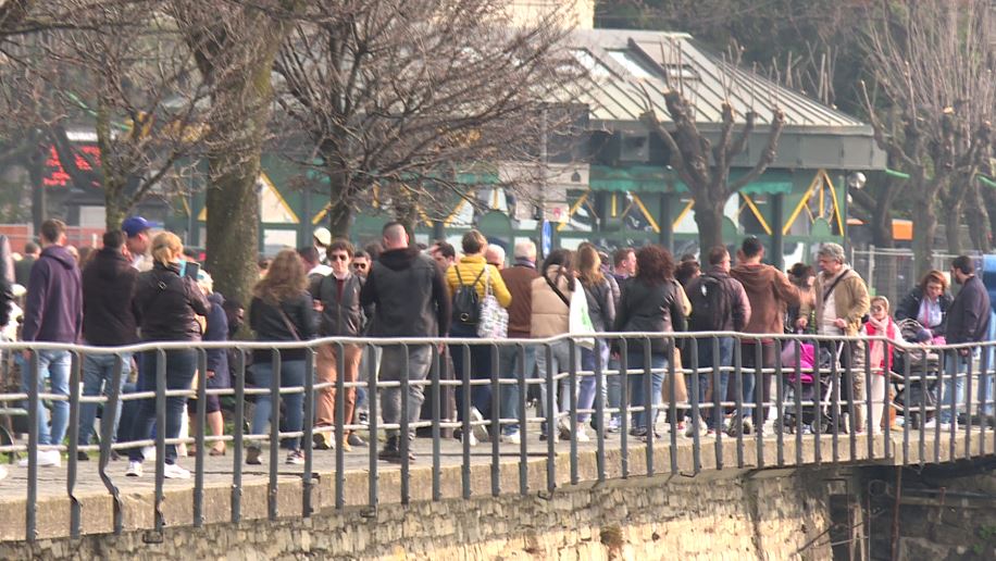 Un flusso continuo di persone. Una coda di gente di quasi 700 metri che si allunga dalla zona di attracco dei battelli, sul lungo Lario Trieste fino alla stazione della funicolare in viale Geno. È così che appare il lungolago di Como nel primo giorno del fine settimana, tra il cantiere delle paratie, la viabilità in ginocchio e i visitatori che hanno già preso d’assalto la città.
