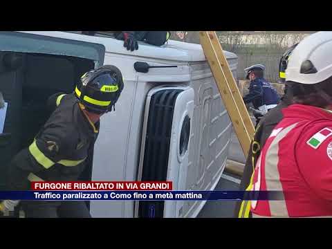 Furgone si ribalta in via Grandi a Como, traffico cittadino paralizzato. Le conseguenze si sono sentite quasi fino a Grandate e, in Canturina, fin dopo Albate.