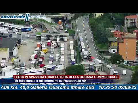 Come ci si aspettava, puntuali il giorno dopo la festa nazionale in Svizzera e la conseguente chiusura della dogana commerciale, arrivano le lunghe code dei tir sull’autostrada A9 Lainate-Como-Chiasso in attesa di compiere le operazioni doganali e varcare il confine. Code che provocano inevitabili disagi agli automobilisti che utilizzano l’autostrada per recarsi a Como. Lunghi incolonnamenti e rallentamenti risultano a partire da Lomazzo, con tempi di percorrenza raddoppiati rispetto all’ordinario. Il sito di Autostrade per l’Italia in mattinata segnalava code tra Monte Olimpino e Chiasso in direzione Svizzera per operazioni doganali. Nei giorni scorsi, la società Autostrade aveva annunciato, per agevolare gli spostamenti attesi verso la Svizzera dopo la festività di Pentecoste, una deviazione di carreggiata per dividere il percorso delle automobili da quello dei mezzi pesanti. A questa, si sono aggiunte le chiusure programmate di alcuni svincoli. Sempre sul sito, viene segnalata infatti l’entrata chiusa di Lomazzo nord verso Como fino alle 13 di oggi e si consiglia l’entrata a Como centro. Stesso avviso per l’entrata di Fino Mornasco, chiusa in entrambe le direzioni fino alle 13. Chiuso al traffico anche il bivio A9 con la Tangenziale di Como provenendo da Lainate verso Villa Guardia per lavori. Uscita consigliata, quella di Lomazzo Nord.
