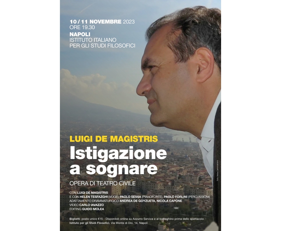(ANSA) – NAPOLI, 06 NOV – Esordio teatrale per Luigi de Magistris con "Istigazione a sognare", opera di teatro civile in scena venerdi 10 e sabato 11 novembre alle ore 19,30 all’ Istituto per gli studi filosofici di via Monte di Dio. Luigi De Magistris racconterà dell’intreccio tra mafie e politica e della funzione civilizzatrice della Costituzione italiana, attraverso la sua storia di magistrato e del suo successivo impegno politico come sindaco di Napoli. Da una parte, la cronaca-racconto di alcune vicende giudiziarie che evidenziano l’intreccio sistemico tra politica e malaffare; dall’altra, invece, racconterà, attraverso quattro casi, la forza morale e civile che manifesta l’attuazione del dettato costituzionale. L’ultima parte, infine, riproporrà alcuni articoli della Costituzione, in particolare il secondo comma dell’art. 3, come strumento per la costruzione di una pacifica convivenza civile fondata sui principi di libertà, uguaglianza e dignità umana e sociale. (ANSA).