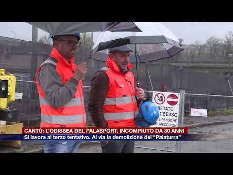 Ruspe e operai al lavoro per demolire definitivamente le rovine del “Palaturra” a Cantù. Iniziano sotto la pioggia i lavori per il nuovo Palasport della Città del Mobile. Si tratta del terzo tentativo.