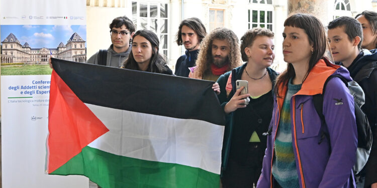 (ANSA) – TORINO, 23 APR – Un gruppo di una decina di ragazzi e ragazze hanno fatto irruzione al grido di ‘Palestina libera’ nel Castello del Valentino di Torino, dove è in corso la Conferenza degli addetti scientifici e spaziali. I ministri Tajani, Bernini, Lollobrigida e Pichetto avevano già lasciato l’edificio dopo aver partecipato alla sessione mattutina del convegno. La maggior parte dei ragazzi – che affermavano di essere studenti del politecnico di Torino – è stata bloccata prima dell’ingresso nel Salone d’Onore, dove si attendeva la ripresa pomeridiana dell’evento. Solo una ragazza è riuscita ad entrare con una bandiera palestinese. (ANSA).