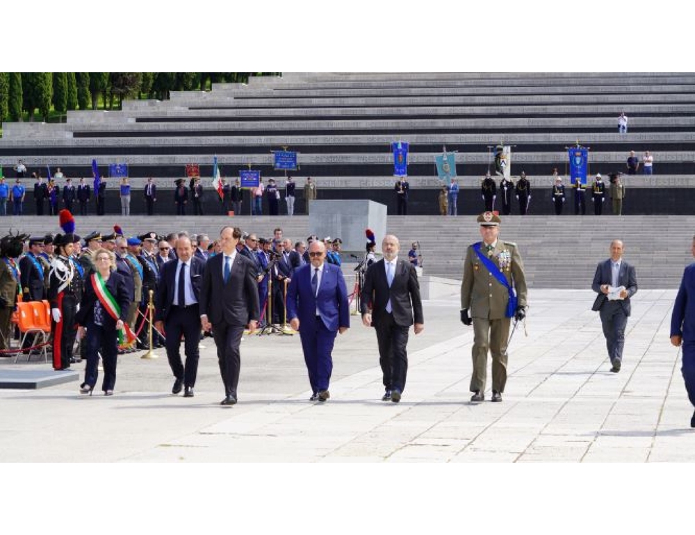 (ANSA) – TRIESTE, 02 GIU – Stamani, al Sacrario Militare di Redipuglia, alla presenza di autorità civili, religiose e militari si è svolta la cerimonia per il 78/o anniversario di fondazione della Repubblica Italiana. La cerimonia, coordinata dal Comando Militare Esercito Friuli Venezia Giulia e presieduta dal Comandante Area Territoriale delle Forze Operative Nord, Generale di Divisione Ugo Cillo, è iniziata con lo schieramento dei reparti delle quattro Forze Armate e dei Corpi Armati dello Stato, seguiti dai Labari delle Associazioni Combattentistiche e d’Arma e dai Gonfaloni dei Comuni decorati al Valor Militare del "Friuli Venezia Giulia". Dopo la resa degli onori ai caduti, il Senatore Luca Ciriani, Ministro per i Rapporti con il Parlamento ha deposto una corona di alloro. Successivamente sono stati accesi i tripodi e la Professoressa Paola Carnielli Del Din, Medaglia d’Oro al Valor Militare e portatrice della Medaglia d’Oro del fratello, Renato, ha letto la motivazione della Medaglia d’Oro concessa al Milite Ignoto (ANSA).