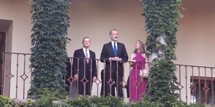 (ANSA) – YUSTE, 13 GIU – Con la foto di rito dal balcone del monastero di San Jeronimo di Yuste (Caceres), sulle colline di Estremadura, il re Felipe VI di Spagna ha dato il benvenuto a Mario Draghi. In onore dell’ex presidente del Consiglio ed ex presidente della Banca centrale europea che domani riceverà dalle mani del monarca il premio europeo Carlo V della Fondazione Academia Europea e Iberoamericana de Yuste il monarca ha offerto una cena privata. Il riconoscimento, istituito nel 1995, elogia il lavoro di quelle persone, organizzazioni, progetti o iniziative che, con il proprio sforzo e dedizione, abbiano contribuito alla conoscenza generale e all’allargamento dei valori culturali, sociali, scientifici e storici d’Europa. Mario Draghi ha ricevuto il premio "per la sua leadership alla guida della Bce, che gli ha permesso di affrontare una delle più grandi crisi che l’Ue abbia vissuto dalla sua creazione". Draghi è giunto al monastero di San Jeronimo di Yuste, immerso nel verde e dove l’imperatore Carlo V si ritirò e morì di malaria, in elicottero da Madrid con re Felipe VI e una ristretta delegazione, dopo aver incontrato al Palazzo della Moncloa il premier spagnolo Pedro Sanchez. Alla cena in suo onore nel Salon de Cuadrales, a base di prodotti locali, partecipano assieme al monarca Felipe VI, il ministro spagnolo degli Esteri, José Manuel Albares, l’alto rappresentante per l’a politica estera dell’Unione Europea, Josep Borrell, l’ambasciatore d’Italia in Spagna, Giuseppe Buccino Grimaldi, e quello della Spagna in Italia, Miguel Angel Fernandez Palacio. Fra gli otto invitati, l’ex governatore della Banca di Spagna, che ha appena terminato il suo mandato, Pablo Hernandez de Cos, invitato dallo stesso Draghi, la governatrice dell’Estremadura, Maria Guardiola, e il capo della Casa del Rey, Camilo Villarino, l’ex capo di gabinetto di Josep Borrell. (ANSA).