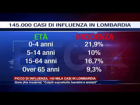 Nella seconda settimana di gennaio, in tutta la Regione, stimati circa 145mila casi di influenza. Sono cresciute anche le infezioni respiratorie acute nei pronto soccorso della Lombardia, dove la pressione si fa sempre più sentire. Aumenta l’incidenza tra adulti e anziani, ma a essere particolarmente colpiti sono soprattutto i bambini fino ai 4 anni, sfiorando il 22%. L’incidenza in Lombardia ha raggiunto il 10% nella fascia d’età 5-14 anni e il 16,7% tra i 15 e i 64 anni. Numeri più bassi, invece, per gli over 65, pari al 9,3%.