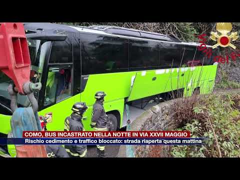Un bus turistico è rimasto incastrato in via XXVII Maggio (Valfresca) a Como nella notte. Sul posto la polizia locale e i vigili del fuoco oltre ai tecnici dell’Enel per riuscire a spostarlo. La strada è chiusa in entrambi i sensi di marcia per consentire le operazioni. Inevitabili disagi per il traffico in queste prima ore della giornata.