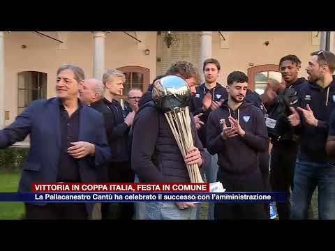 La Pallacanestro Cantù ha festeggiato nel municipio della città del mobile la conquista della Coppa Italia. Coppa ottenuta domenica sera, superando nella finalissima la formazione di Cividale con un netto 74-57.