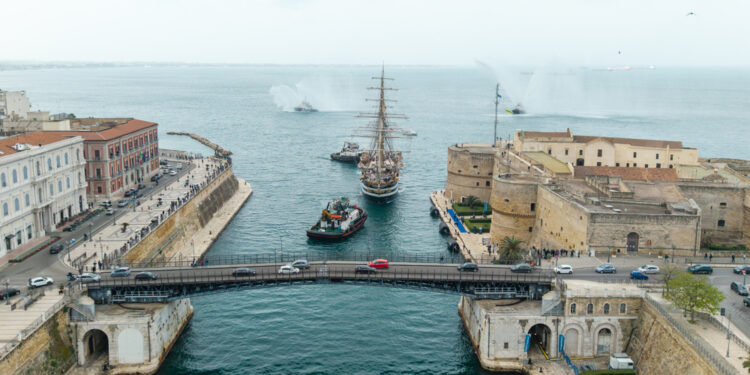 (ANSA) – TARANTO, 16 APR – L’Amerigo Vespucci è arrivata a Taranto, settima tappa del tour Mediterraneo, la fase finale del giro del mondo cominciato l’1 luglio 2023. La nave scuola della Marina Militare ha ormeggiato alla banchina del Castello Aragonese, nel cuore della città dei due mari, accolta da cittadini, turisti e curiosi assiepati tra l’iconico ponte girevole e il monumento al marinaio. "Siamo in mezzo ai simboli di Taranto, il Vespucci come monumento tra i monumenti – le parole del comandante, il capitano di vascello Giuseppe Lai -. Taranto è una città che ha un legame fortissimo con la Marina Militare e con i marinai. Per i tantissimi pugliesi a bordo è stato come tornare a casa. Una sosta che si fonde anche con i riti della settimana santa che sono molto sentiti in questa città. Per noi è un orgoglio essere qui e raccontare anche ai tarantini e ai tanti pugliesi che verranno a trovarci quella che è stata la nostra esperienza in giro per il mondo". Domani si aprirà ufficialmente anche il Villaggio IN Italia, l’esposizione itinerante che segue il Vespucci e che ospiterà eventi, conferenze, concerti e proiezioni cinematografiche dedicate all’eccellenza italiana e al racconto del tour mondiale in Italia. La Conference Hall, allestita all’interno del Castello Aragonese, ospiterà – tra gli altri – il seminario internazionale organizzato da Aman (Alliance of Mediterranean News Agencies) sui Giochi del Mediterraneo e il Forum ANSA con i ministri Foti e Abodi. (ANSA).