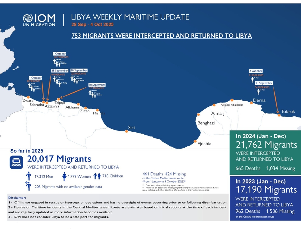 – TUNISI, 07 OTT – Almeno 461 persone sono morte e 424 risultano disperse sulla rotta del Mediterraneo centrale dall’inizio dell’anno al 4 ottobre. Lo rende noto l’Organizzazione internazionale per le migrazioni (Oim) in Libia nel suo ultimo aggiornamento pubblicato su X. Nello stesso periodo, precisa l’agenzia dell’Onu, i migranti intercettati in mare e riportati in Libia sono stati 20.017, di cui 17.313 uomini, 1.779 donne, 718 minori e 208 di cui non si conoscono i dati di genere.