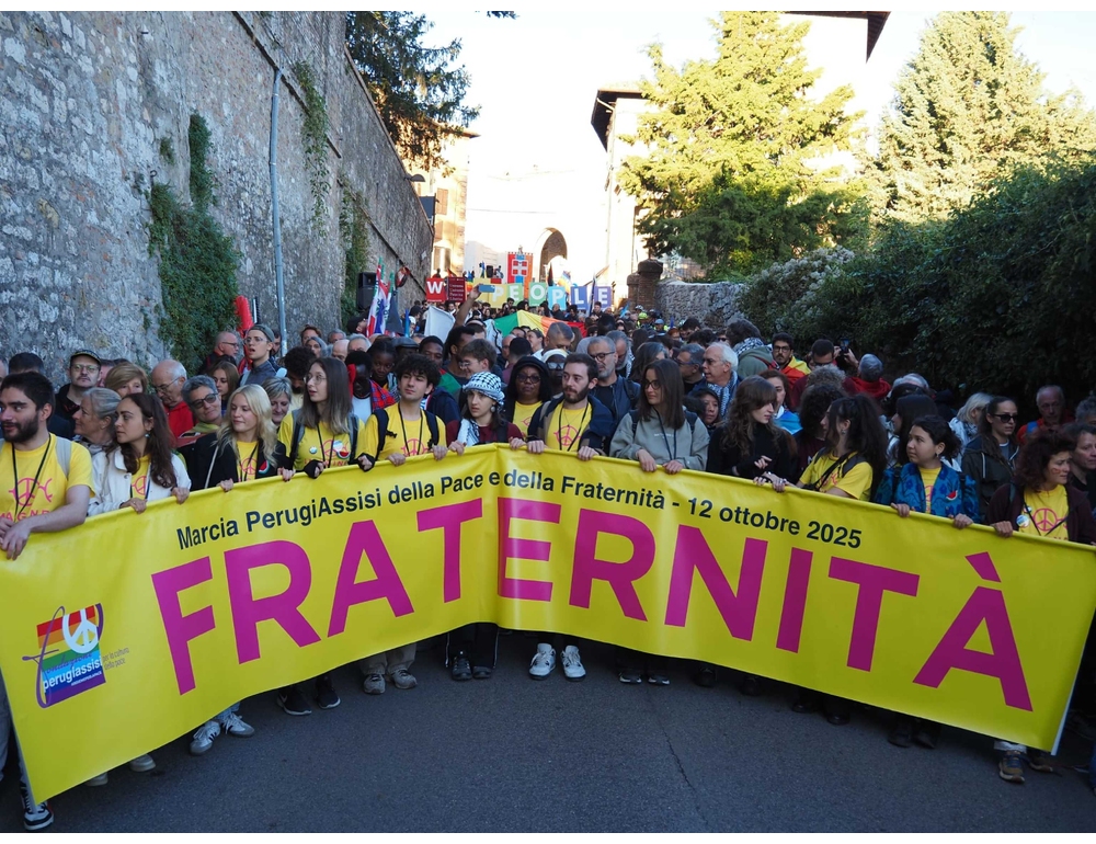 (ANSA) – PERUGIA, 12 OTT – E’ partita la Marcia PerugiAssisi della pace e della fraternità "Imagine all the people", Immagina tutte le persone vivere insieme in pace. L’arrivo della testa del corteo ad Assisi è previsto intorno alle 15. In tanti dietro al grande striscione con la scritta "Fraternità", con un grande drappo con i colori dell’iride e della Palestina. Per una delle edizioni più partecipate degli ultimi anni. Numerosa la presenza di associazioni, movimenti e singoli cittadine e cittadini ma anche delle Istituzioni, con la presidente della Regione Stefania Proietti, di quello della della Provincia di Perugia Massimiliano Presciutti e la sindaca Vittoria Ferdinandi. Con loro diversi leader di partito. (ANSA).