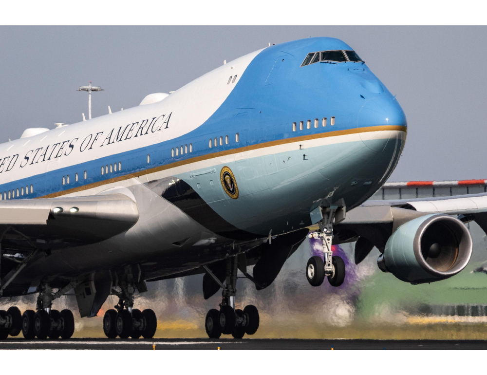 (ANSA) – ROMA, 13 OTT – L’Air Force One con a bordo il presidente degli Stati Uniti Donald Trump è atterrato all’aeroporto Ben Gurion di Tel Aviv, in Israele. (ANSA).