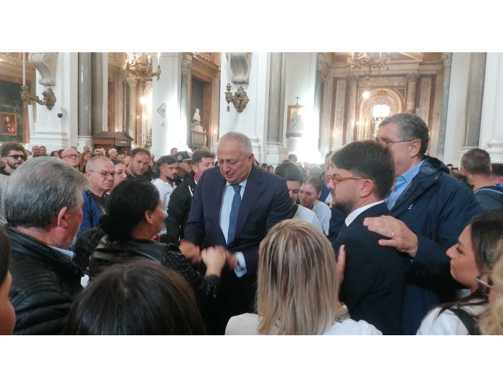 (ANSA) – PALERMO, 16 OTT – Nella cattedrale di Palermo è stata accolta da un fortissimo applauso la bara di Paolo Taormina, il ventunenne ucciso domenica scorsa con un colpo di pistola. La madre, Fabiola Galioto, il padre Giuseppe e la sorella Sofia siedono in prima fila. Al funerale anche il sindaco di Palermo, Roberto Lagalla, che visibilmente commosso ha abbracciato la madre di Paolo. (ANSA).