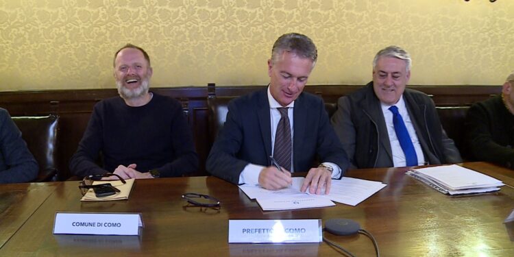Presenti alla firma, oltre al prefetto Corrado Conforto Galli, il presidente della Provincia di Como Fiorenzo Bongiasca, il sindaco Alessandro Rapinese, i rappresentanti delle realtà economiche, scolastiche e associative del territorio.