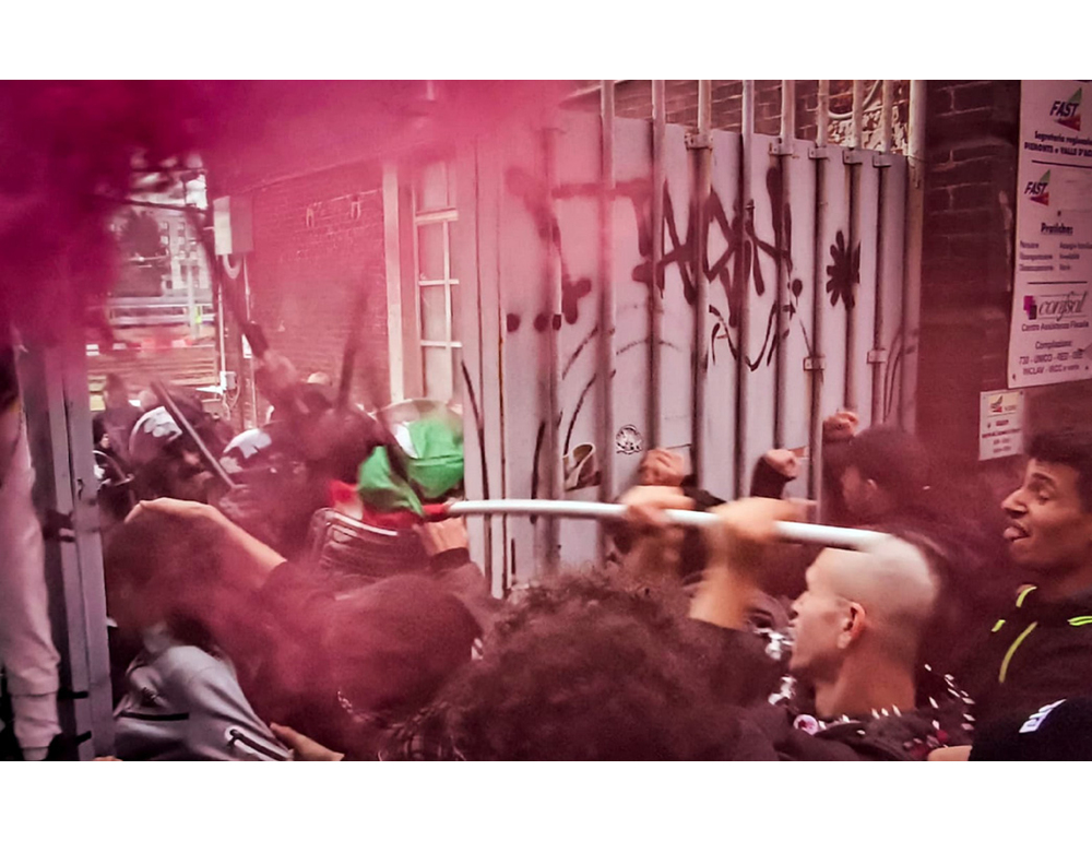 Fumogeni e petardi contro la polizia
