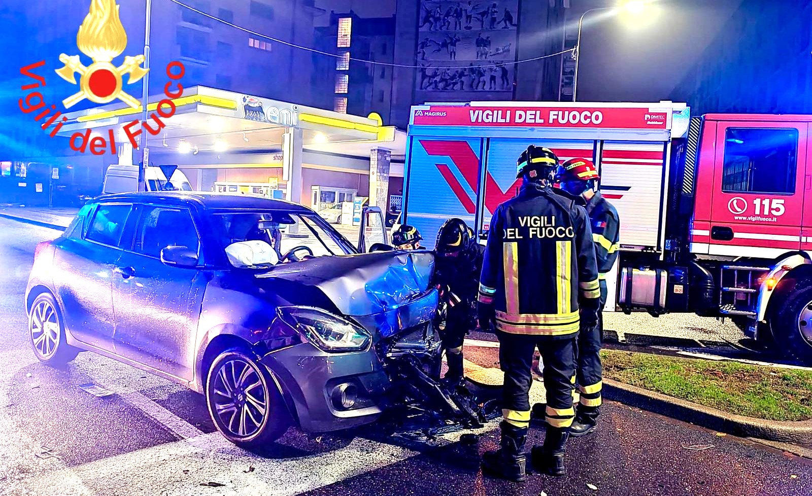 Vigili del Fuoco e mezzi del 118 impegnati nella notte in viale Masia per uno scontro fra due auto nella zona del semaforo, davanti alla sede dell’Aci. Un ferito lieve è stato affidato alle cure dei sanitari.