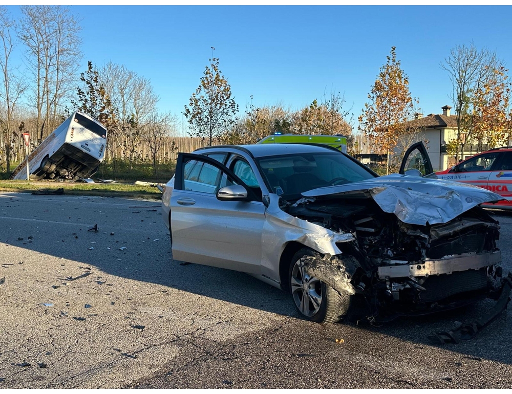 (ANSA) – SESTO AL REGHENA, 18 NOV – Un bus con a bordo diversi studenti, di rientro da alcuni istituti scolastici di Portogruaro (Venezia), è finito nel fossato laterale dopo un violento impatto con una vettura, a Sesto al Reghena (Pordenone). Il mezzo, con a bordo 20 studenti, è rimasto in bilico appena oltre la carreggiata. L’autista ha riportato leggere ferite per le quali è stato trasferito in ambulanza al pronto soccorso. La donna alla guida dell’auto è stata stabilizzata dal persona dell’automedica e poi elitrasportata in ospedale: le sue condizioni appaiono gravi. (ANSA).