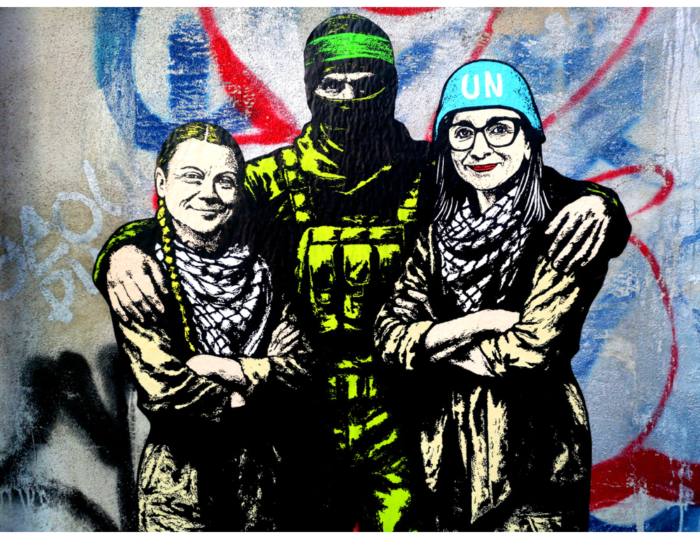 (ANSA) – ROMA, 27 NOV – Alla vigilia della grande mobilitazione nazionale e della Giornata internazionale di solidarietà con il popolo palestinese, aleXsandro Palombo ha scelto di lasciare il suo segno davanti alla stazione Termini di Roma con un murale intitolato Human Shields ("Scudi Umani"), con cui l’artista e attivista dà il benvenuto alle due protagoniste attese alle manifestazioni, Greta Thunberg e Francesca Albanese. In Human Shields, l’autore ritrae Greta Thunberg, simbolo della lotta alla crisi climatica, e Francesca Albanese, relatrice speciale delle Nazioni Unite per i Territori palestinesi occupati. Le due compaiono fianco a fianco, con le braccia conserte, vestite con uniformi color kaki e una kefiah al collo. Albanese indossa un casco blu dell’Onu, mentre Thunberg, con la sua iconica treccia, mostra un’espressione determinata.Ai loro piedi compare il cartello Skolstrejk för klimatet, simbolo delle battaglie ambientaliste della giovane attivista, oggi intrecciate con nuove forme di militanza. Alle loro spalle appare la sagoma di un miliziano di Hamas, in uniforme militare e con il volto coperto da un passamontagna, che le abbraccia da dietro. Palombo invita così a a riflettere sui rischi di strumentalizzazione dell’attivismo occidentale e sulle ambiguità del dibattito contemporaneo, chiamando in causa anche il ruolo dell’Onu nel contesto palestinese. Il titolo Human Shields richiama in modo esplicito la pratica di Hamas di utilizzare civili come scudi umani, ma al tempo stesso suggerisce come figure pubbliche possano trasformarsi in scudi ideologici nei conflitti narrativi globali. L’opera, spiega una nota, "apre interrogativi sulla fragilità dell’attivismo contemporaneo, esposto al caos di messaggi e all’opportunismo mediatico, fino al rischio di diventare megafono della propaganda jihadista e della retorica estremista, che mira a delegittimare Israele, insinuare instabilità nelle democrazie occidentali e distorcere profondamente il dibattito internazionale". (ANSA).